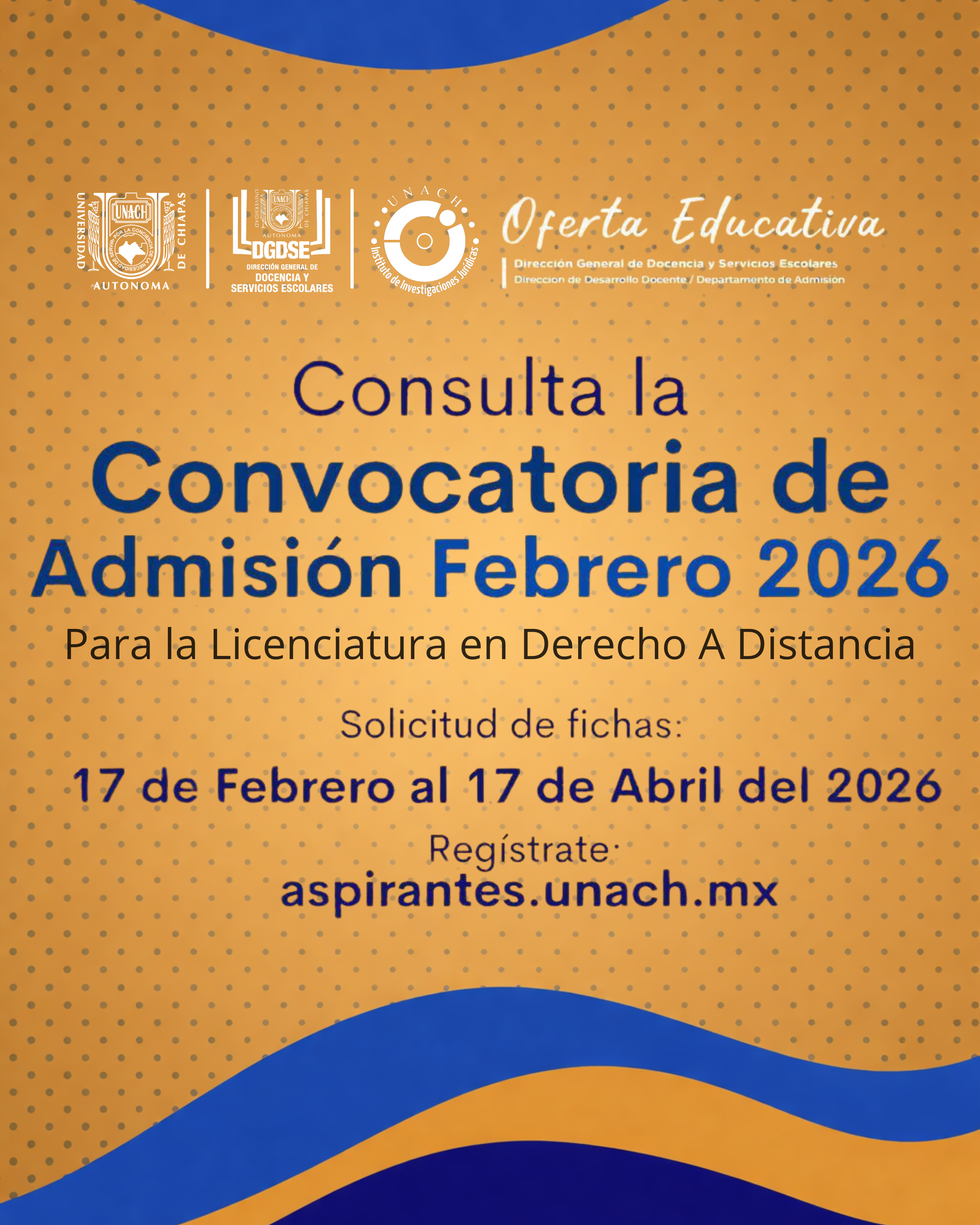 Está disponible la Convocatoria de Admisión Febrero 2026 para la Licenciatura en Derecho a Distancia